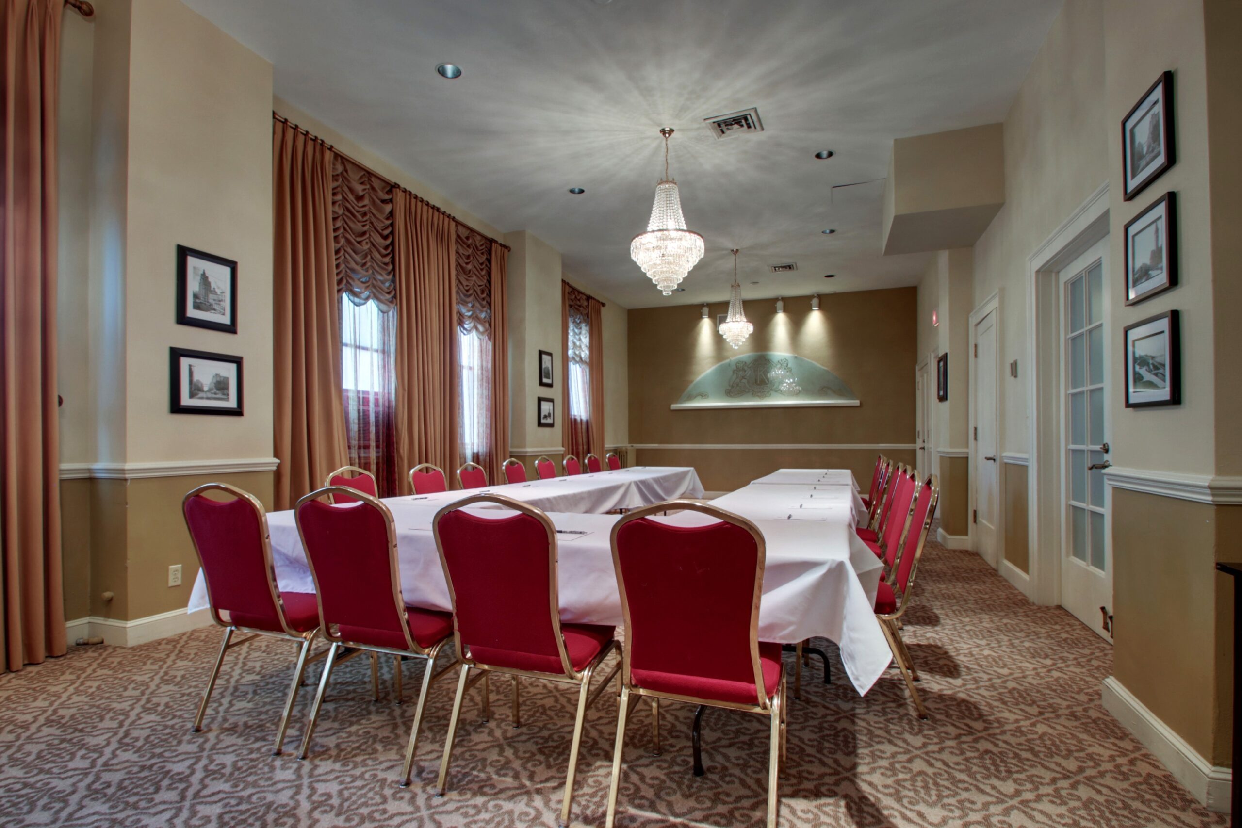 Many original architectural details—including terrazzo floors, crystal chandeliers, and ornate plasterwork— are still showcased throughout the property.